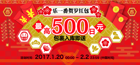在此,乐一番特别准备了新春贺岁红包等你来拿!活动时间内,若满足有包裹入库可得200日元优惠券!若满足有包裹入库且有包裹发出可得500日元优惠券!