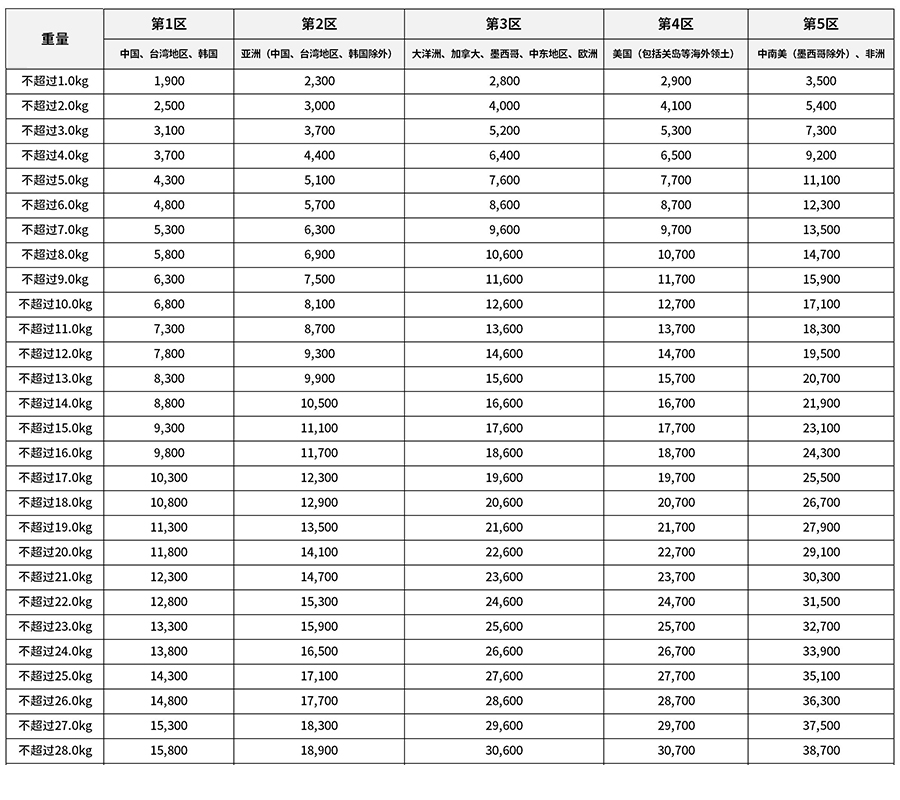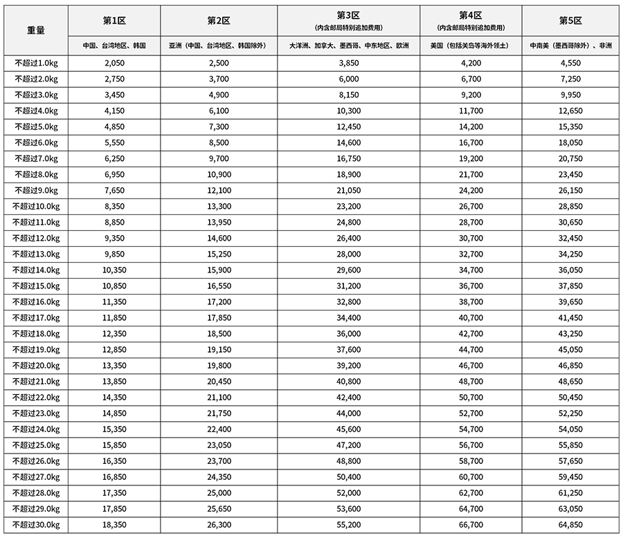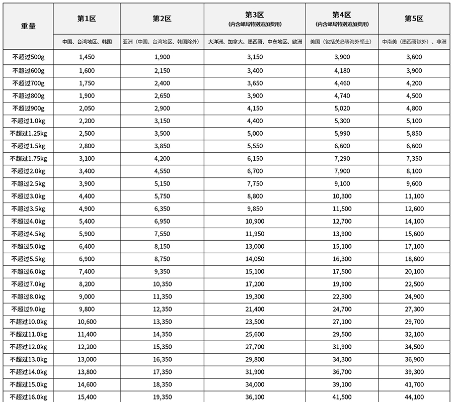 二、ems运费(运费单位:日元)