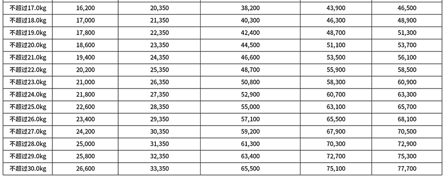 五、国际包裹(海运)(运费单位:日元)