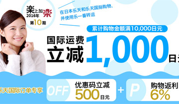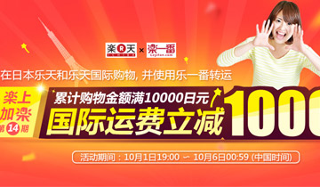 10月1日19:00 〜 10月6日00:59 乐天购物累计满10000减1000,一个用户一次