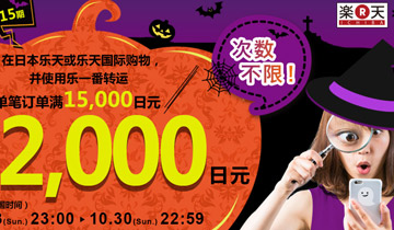 10月23日23:00 〜 10月30日22:59 乐天购物单笔满15000减2000,次数不限