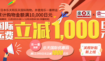 11月5日19:00 〜 11月10日00:59 乐天购物累计满10000减1000,一个用户一次