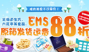 只要包裹中含royce生巧、六花亭、白色恋人等北海道相关食品,使用ems原箱发货即可享受国际运费88折!