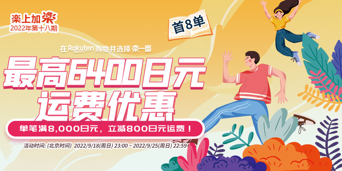 2022年9月18日(周日)23:00 ~ 2022年9月25日(周日)22:59 乐天购物单笔订单满8000减800。