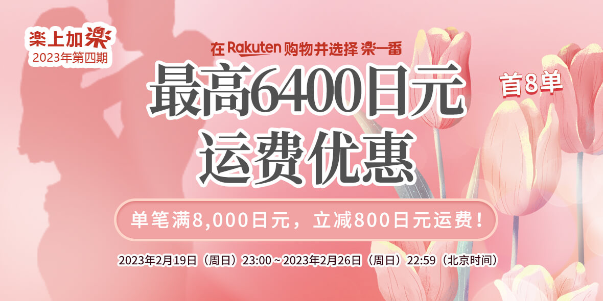 2023年2月5日(周日)23:00 ~ 2023年2月12日(周日)22:59 乐天购物单笔订单满8000减800。