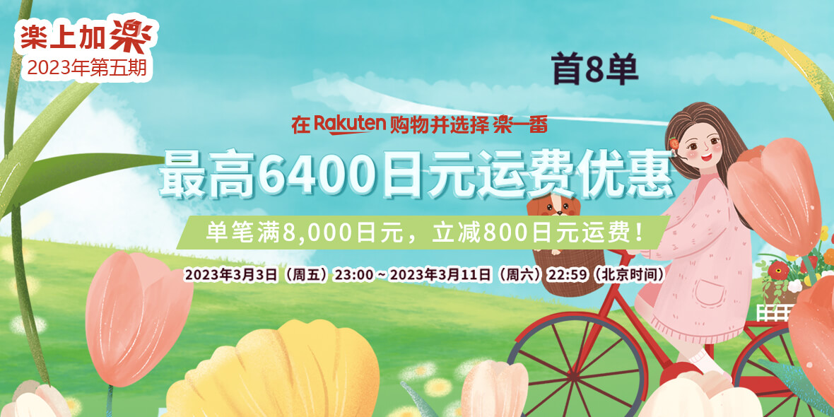 2023年3月3日(周五)23:00 ~ 2023年3月11日(周六)22:59 乐天购物单笔订单满8000减800。