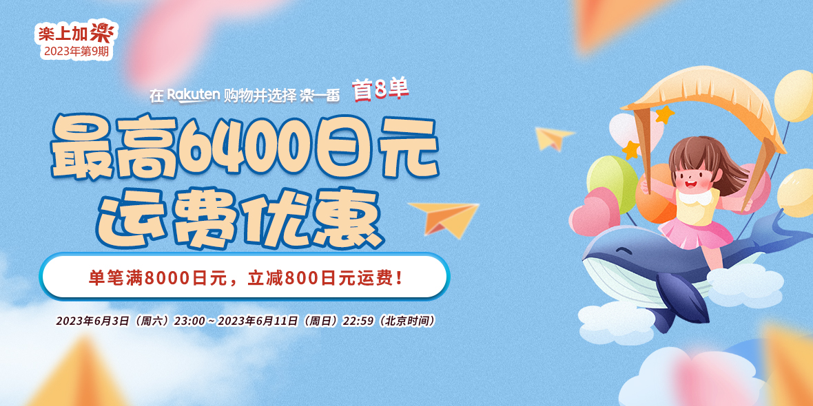2023年6月3日(周六)23:00 ~ 2023年6月11日(周日)22:59 乐天购物单笔订单满8000减800。