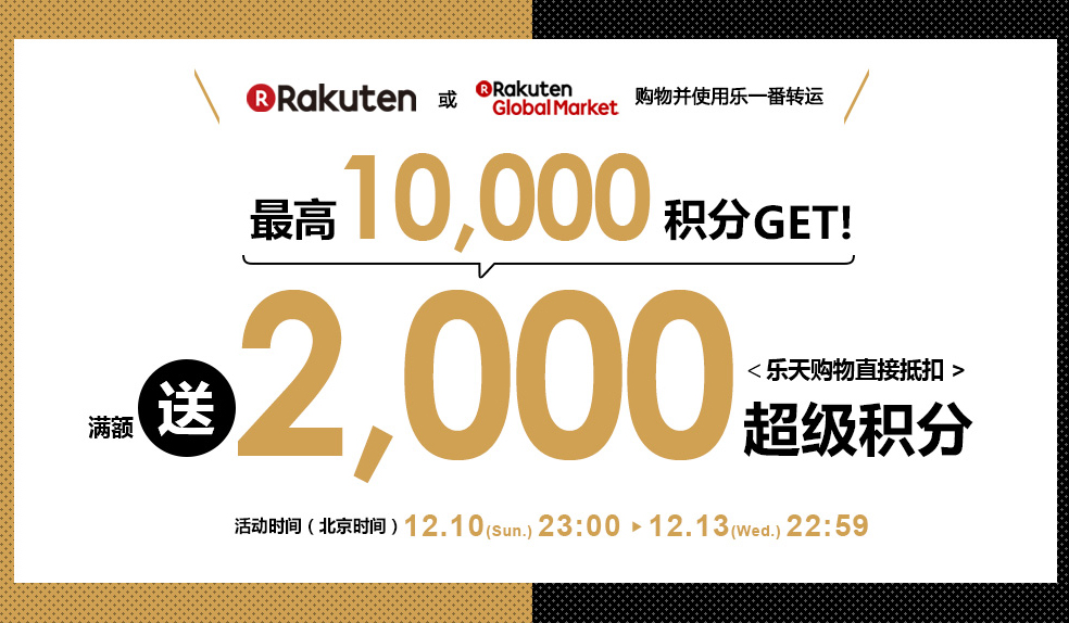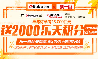 乐天购物单笔满15000送2000积分,每个乐天账号上限1万积分 (12月31日发积分)