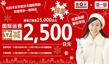 12月28日00:00〜12月30日23:59 单笔订单满15,000日元(含税、不含运费)即可减免国际运费2,500日元!
