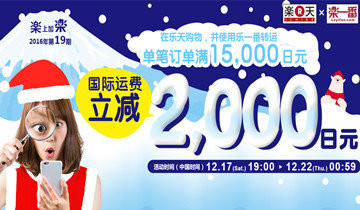 12月17日19:00 〜 12月24日18:59 乐天购物单笔满15000减2000,次数不限
