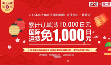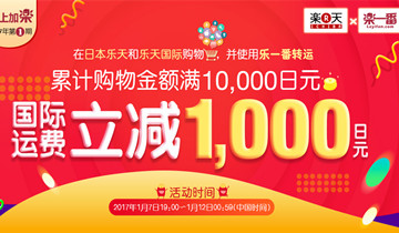1月7日19:00 〜 1月12日00:59 乐天购物累计满10000减1000,一个用户一次