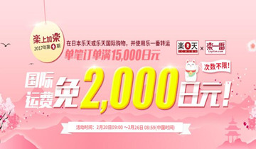 2月20日09:00 〜 2月26日08:59 乐天购物单笔满15000减2000,次数不限