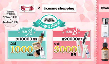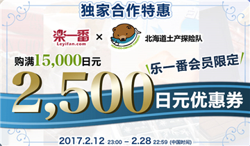 乐一番会员独家优惠:单笔订单含税满15,000日元可用2,500日元优惠券,还可与乐上加乐同享!