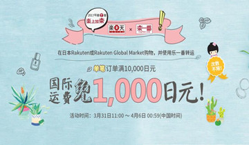3月31日11:00 〜4月6日 00:59 rakuten购物单笔满10000减1000,次数不限