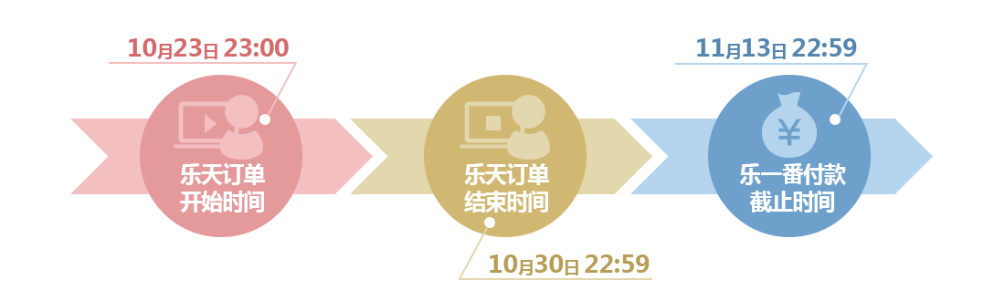 乐天下订单的时间,还是在乐一番付款的时间?本次活动的时间是指从乐天下订单的时间,即中国时间的