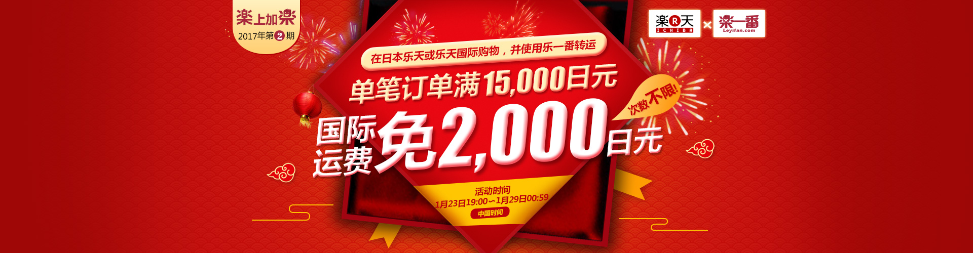15,000日元的订单包裹才可获得乐上加乐国际运费减免。 -