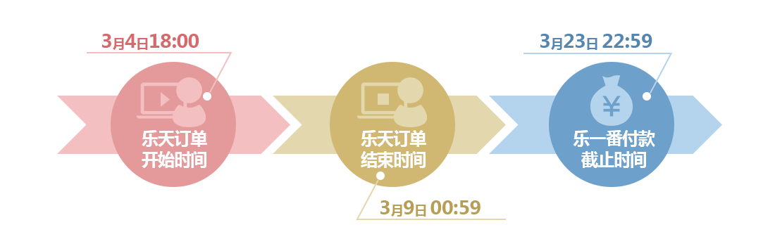乐天下订单的时间,还是在乐一番付款的时间?本次活动的时间是指从乐天下订单的时间,即中国时间的