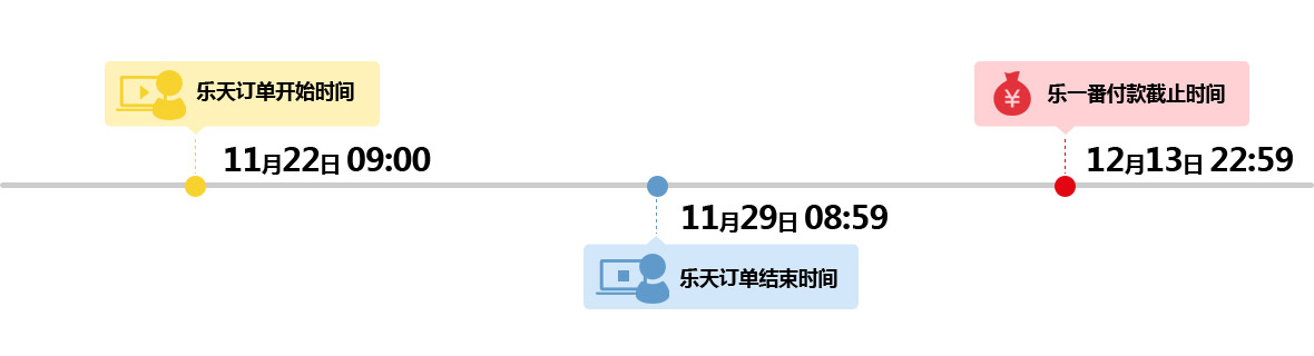 乐天下订单的时间,还是在乐一番付款的时间?本次活动的活动时间是指在乐天成功提交订单的时间。