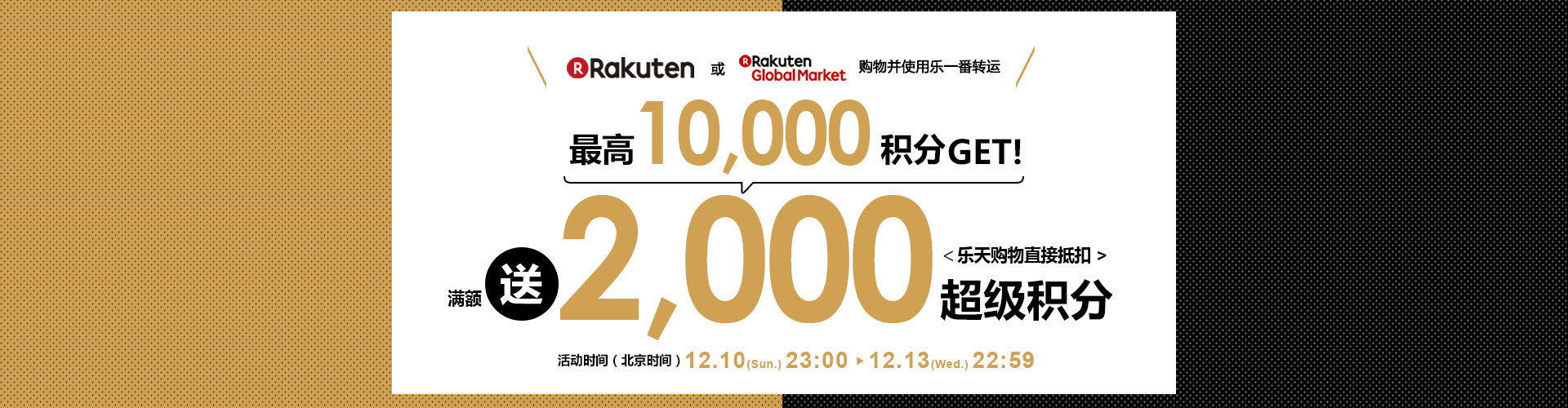 每个乐天账号均可享受5次优惠,即5笔符合条件的订单可得10,000积分。