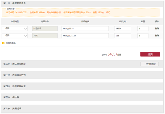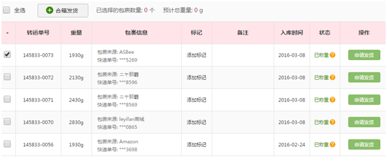勾选需要申请发货的订单,并填写完申报信息,地址等信息