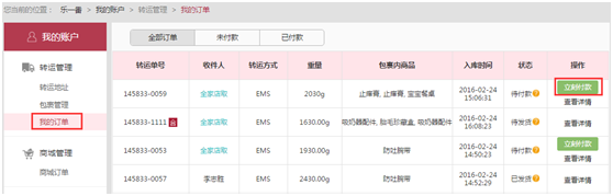 第一步:当你的包裹达到乐一番仓库,后你可以再我的账户——包裹管理的页面中看到你自己的订单信息