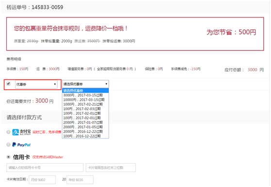 点击立刻付款,在优惠券的位置勾选,便可以选择我们的优惠券了。并最后完成支付
