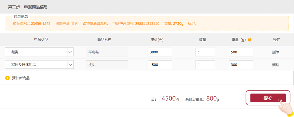 (2)填写申报商品信息