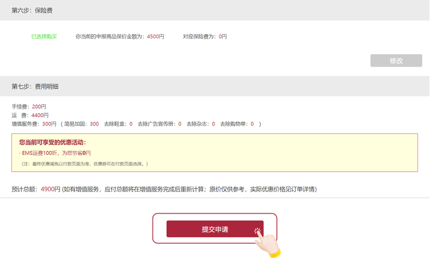 (7)查看预计的费用明细并点击“提交申请”