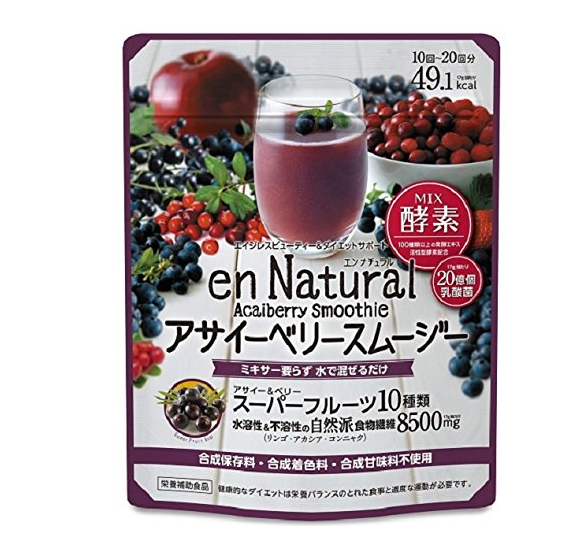 日本en natural酵素使用阿萨伊浆果,蓝莓,红莓,黑莓等10种小浆果,配合天然果蔬谷物,经长时间发酵的提取精华,加入20亿乳酸菌,从根本改善体内环境。食用方法:8.5克约100 cc的水,或约17克200 cc的水溶化后饮用。也可混合牛奶、酸奶等。有三款口味供您选择:青汁奶昔、巴西莓、生姜蜂蜜。现在购买更有六折折扣,每款平均节省1000日元左右。