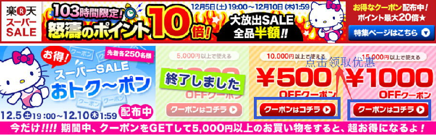 凡是在活动时间内购满10000円即可享受立减1000,需要领取优惠券!