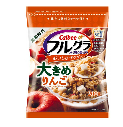 苹果大果粒谷物麦片,calbee限定版!和通常版的草莓不同,这款里面放的水果是苹果,而且果粒更大!口感和通常版也不同,感觉会更清爽一点,喜欢calbee麦片的朋友可以换个口味来试试哦!