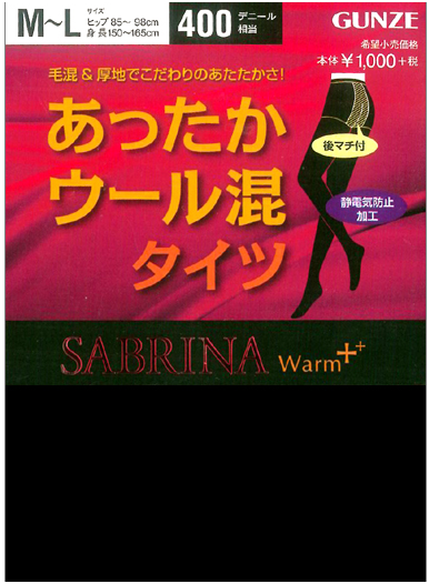 gunze是日本有名的内衣丝袜品牌,相同d数下,他家的抗冻能力比厚木要好。这款sabrina warm 有400d,是sabrina系列里最厚的一款。由于加入了羊毛,特别的亲肤贴合而且防风,再配合上防静电的加工工艺,一个大写加粗的“好穿”。穿上它,下着雪去外滩边儿吹风也冷不着你。