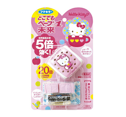 天气渐热,虫子又开始要肆虐了。这款vape防蚊手环是小朋友非常喜欢的kitty造型,特别适合女生,戴在手腕上和手表差不多,使用干电池工作,药水成分安全不刺鼻,驱蚊效果比旧款加强5倍,可连续使用20天哦!售价1652日元大约96元。