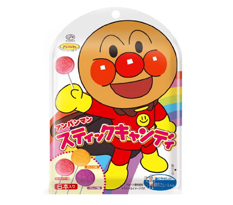 面包超人图案棒棒糖,含3种类天然果汁味道,“草莓”,“橙”,“葡萄”不同口味有不同图案,三个面包超人动漫形状(面型)。而且是含有绿茶多酚护齿成分,怕吃糖蛀牙的家长们可以放心了。这种棒棒糖口感不是很甜,怕孩子吃多糖的家长可以完全放心。不二家風味膾炙人口,至1950年初成立至今,特殊口感風靡日本五十年,口口奶糖化入口中,彷彿又讓人體驗到傳統的母親手藝和甜蜜溫馨。