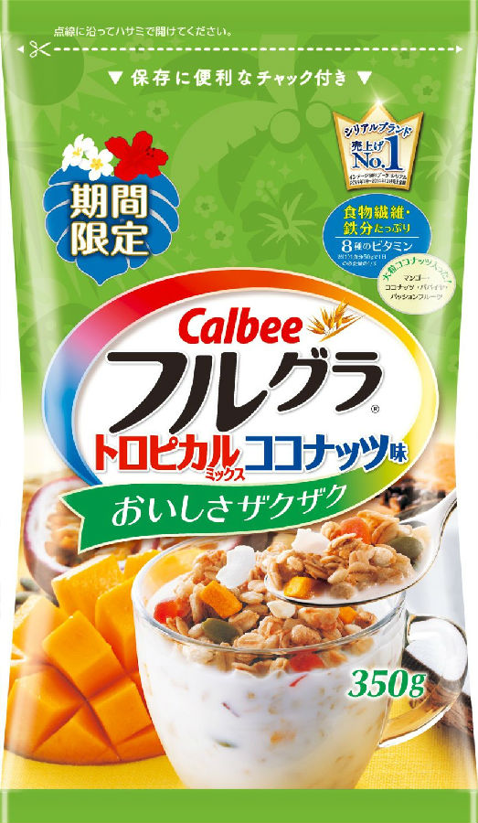calbee营养谷物麦片奶香十足味道好,虽然转运费比较贵,但还是有吃货们前仆后继还海淘,吃完以后都觉得味道赞,下次还会买。好了,现在季节限定版出来了!这个限定版添加了更多芒果,甜美多汁富有营养,配合谷物纤维,奶味和果香混合,味道更加不得了!尤其是喜欢芒果的朋友千万不能错过哦。限定版由日亚发货,品质可靠,350g售价980日元,大约rmb50元。转运费大约60元左右,不过味道一定好吃