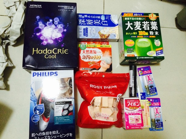日淘第一单买了日立n1000美容仪、剃须刀、面膜、红豆眼罩、大麦若叶、熊野笔、洗眼液、唇膏、睫毛增长液、卫生巾(就不上镜啦)以及那包不知道叫啥的海绵块。作为一名跟风党,我在n810、n1000、n2000之间纠结了很久,最后处于性价比和功能的考虑,还是选择了n1000,用了几次还是挺满意的,下次可以写一篇。