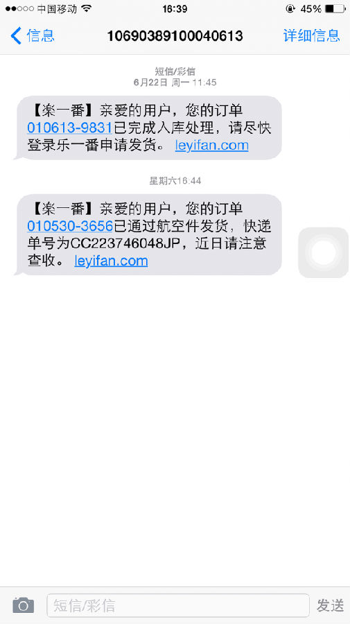 发信息和发邮件过来,非常的及时而且速度效率都很高,这次我第二次用乐一番,很喜欢,会一直用下去