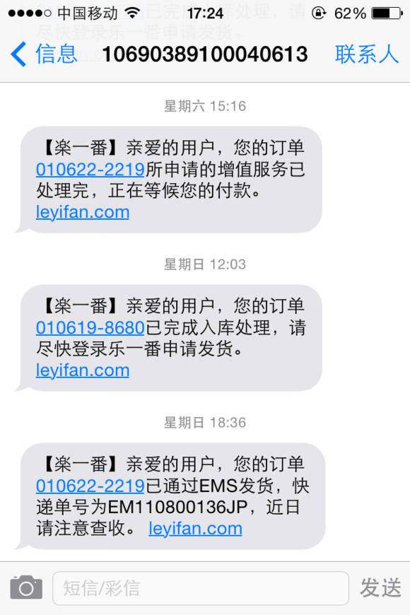 最近ems超级给力,都是3天就能到货,乐一番也是当天合箱当天发出!主要还无税!呵呵~~晒单开始新规则!继续参加活动求券!会员标识码:lyf0349445