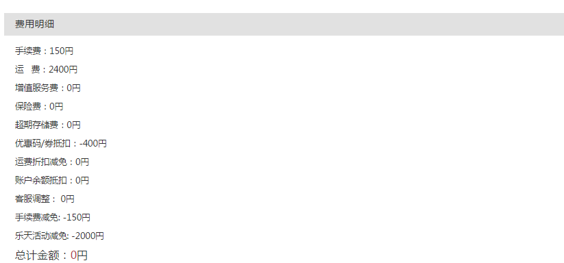 接着运费包裹1kg然后运费是2400日元,同时参加了乐上加乐活动满15000可以减2000.