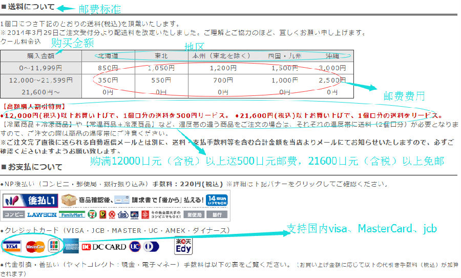 很多小伙伴不清楚商品是否要运费,在这里教大家怎样看运费,购买链接商品页面往下拉就会看到以下的页面“送料について”,即邮费收费标准,关于运费由详细的说明。