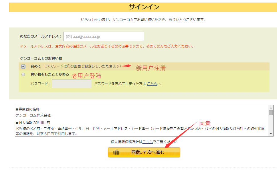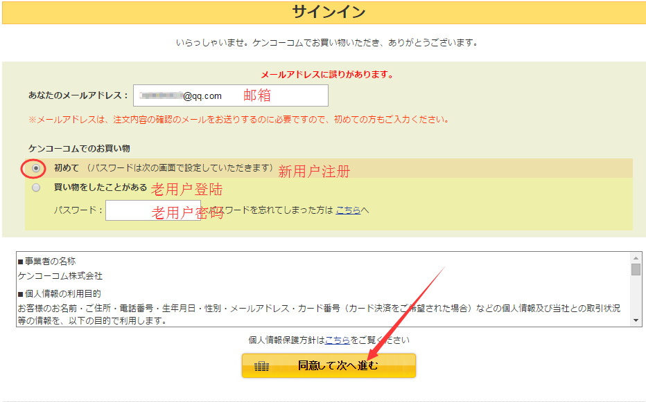 填写注册邮箱,选择新会员注册