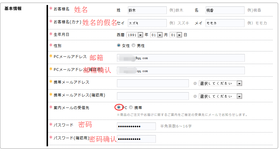 填写会员注册信息