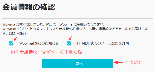 6、选择是否愿意接收“新功能、网站更新维护信息、优惠情报”等内容的广告邮件